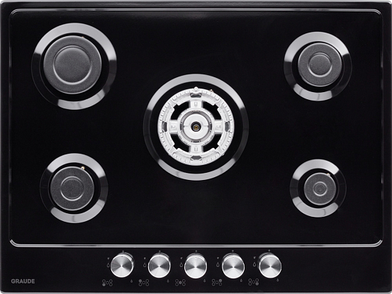 Компактная газовая панель шириной 70 см с 5 конфорками, включая WOK. Поворотные переключатели обеспечивают удобное управление. Система «Газ контроль» и автоматический электроподжиг гарантируют безопасность.