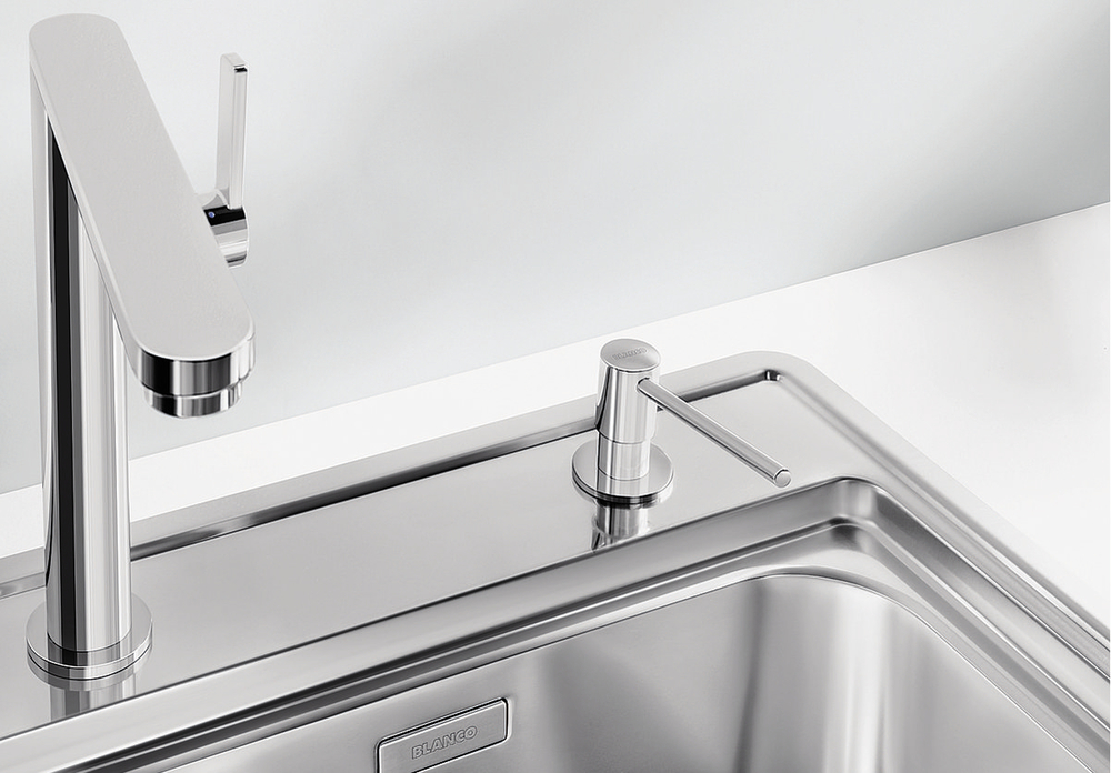 Дозатор TORRE 527744 от Blanco воплощает философию бескомпромиссного качества, инновационного дизайна и функциональности, превращая самое активное место на кухне в продуманный, эргономичный и эстетичный центр для приготовления пищи.